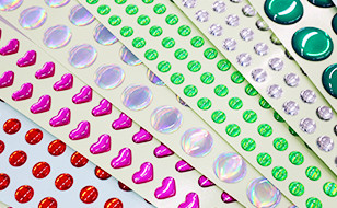 ウレタン樹脂を塗布することで、重厚なレンズ効果が得られ、通常のシールにはない、艶と光沢により、