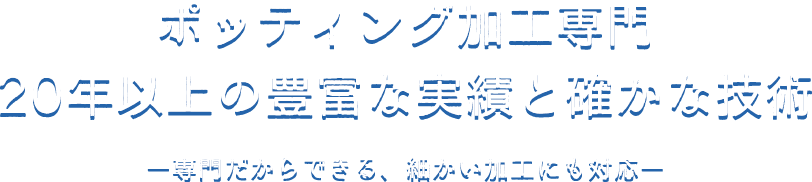 ポッティング加工としては、20年以上の豊富な実績があり、多くの企業・印刷会社様からご用命いただいております。